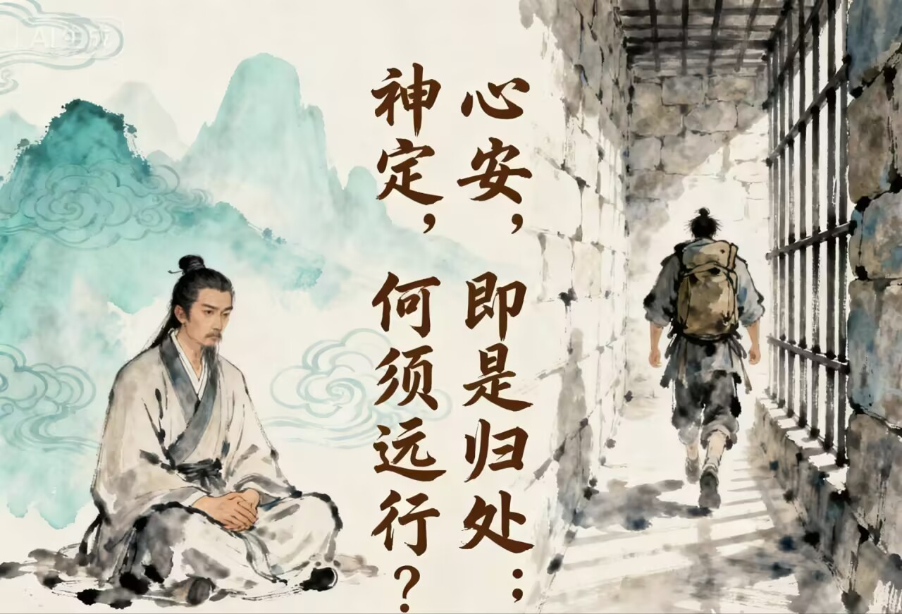 于是他转而劝人自省:“心安,即是归处;神定,何须远行?”既然外物不可恃,人心不可测,何不反求诸己?只要你内心安宁,何处不是故乡?只要你精神安定,又何必远走他乡去寻清净?这话说得轻巧,却极难做到。多少人一生奔波,就是为了寻找一个“心安”的地方,殊不知,心不安,走到天涯也是牢笼