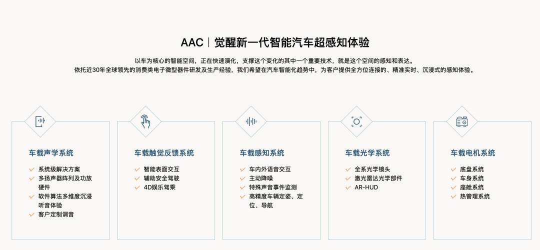 瑞声科技汽车解决方案一览。图片来源:瑞声科技官网