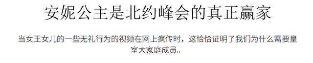 不过,事后宫里有人出来回应了此事,说安妮公主并不是有意这样做……之类巴拉巴拉。
