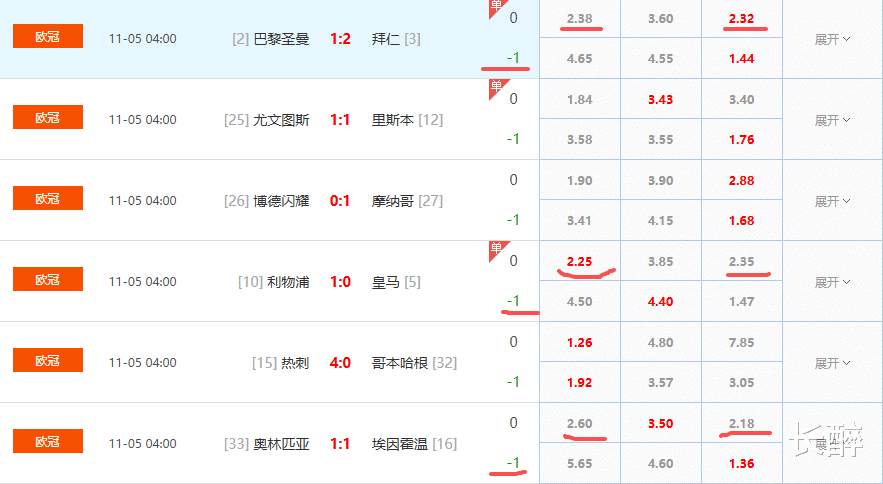 先说方案里要的巴黎和拜仁这个平局,南大王半场2比0领先,但少打一人,主场作战的巴黎是有很大机会追平的,但最终还是败北。