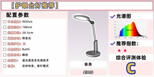 护眼灯最好的牌子有哪些?良亮4308护眼台灯的光线经过漫射过滤处理,照出来柔和又均匀,照明覆盖范围达到国AA级标准,日常看书、写作业是够用的。功能上比较贴合基础需求,色温在3000K-5000K之间,搭配滑动调光设计,切换冷暖光、调明暗都很方便。显色指数能到Ra95,看东西颜色还原得比较真实,不会失真。还配备了45分钟休息提醒,能帮着避免用眼过度,附带的小夜灯功能,晚上起夜或轻度补光也能用。不过它没什么进阶功能,整体配置比较基础,而且滑动调光的手感一般,调节时不够顺滑。