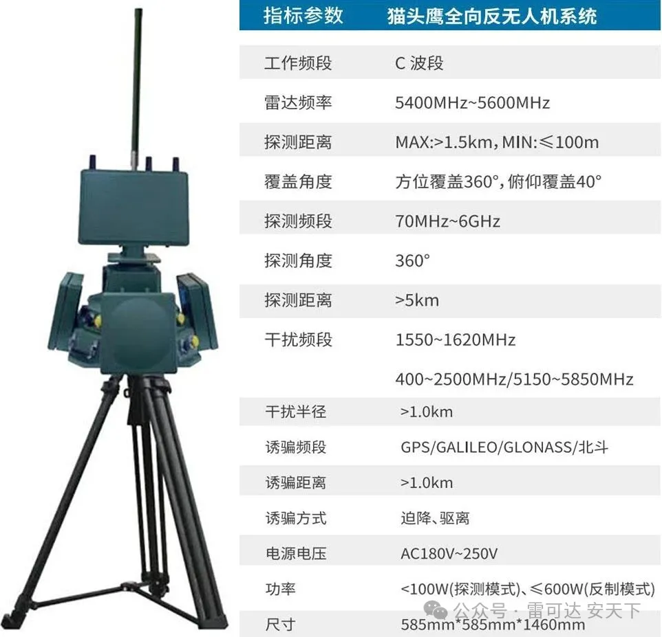 雷可达猫头鹰全向反无人机系统