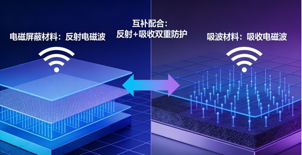 2.电磁屏蔽与吸波:互补配合,应对不同场景。两者都负责电磁防护,但屏蔽材料适合“阻挡外部干扰、防止内部泄漏”,吸波材料适合“吸收多余电磁波、避免二次反射”,高端设备中往往两者搭配使用,实现全方位电磁防护。