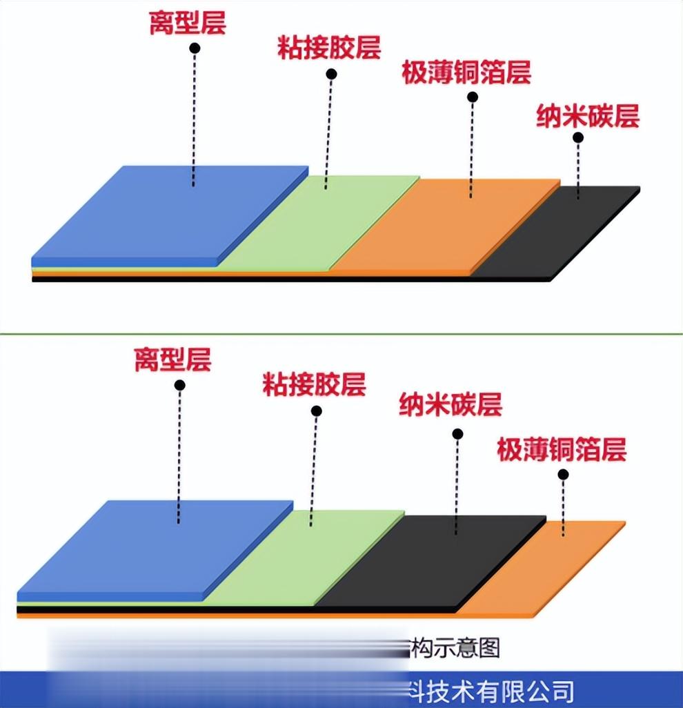 在复合铜箔的基础上,行业内还创新研发出纳米碳铜箔,通过在铜箔表面涂覆纳米碳涂层(如纳米石墨、碳纳米管等),进一步突破传统材料的性能边界。这种纳米碳铜箔既保留了铜箔优异的电磁屏蔽性能和基础导热能力,又借助纳米碳材料的高导热特性,将导热效率提升显著,其纳米碳涂层导热系数可达2500 W/m·K以上,远优于普通铜箔,同时纳米碳涂层还能优化材料的均热效果,快速将点热源转化为面热源,整机降温可达6~15℃,解决了传统铜箔“导热不均、散热效率有限”的痛点。