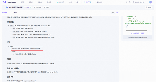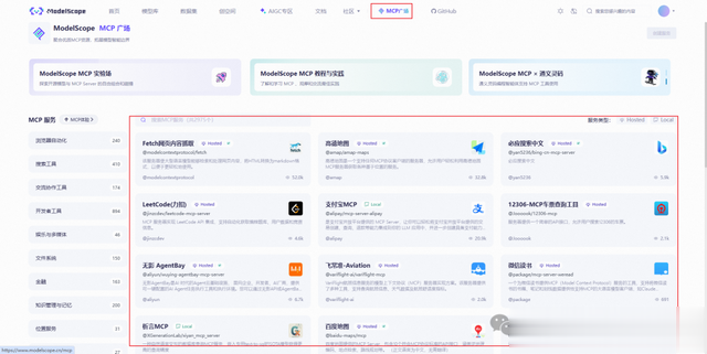 魔搭社区,为我们提供了很多远程Server,魔搭地址:https://www.modelscope.cn/mcp