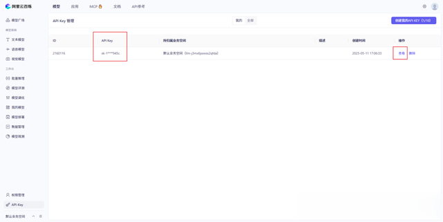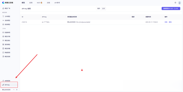 在页面的左小角,点击:API-Key,进入API Key管理页面。