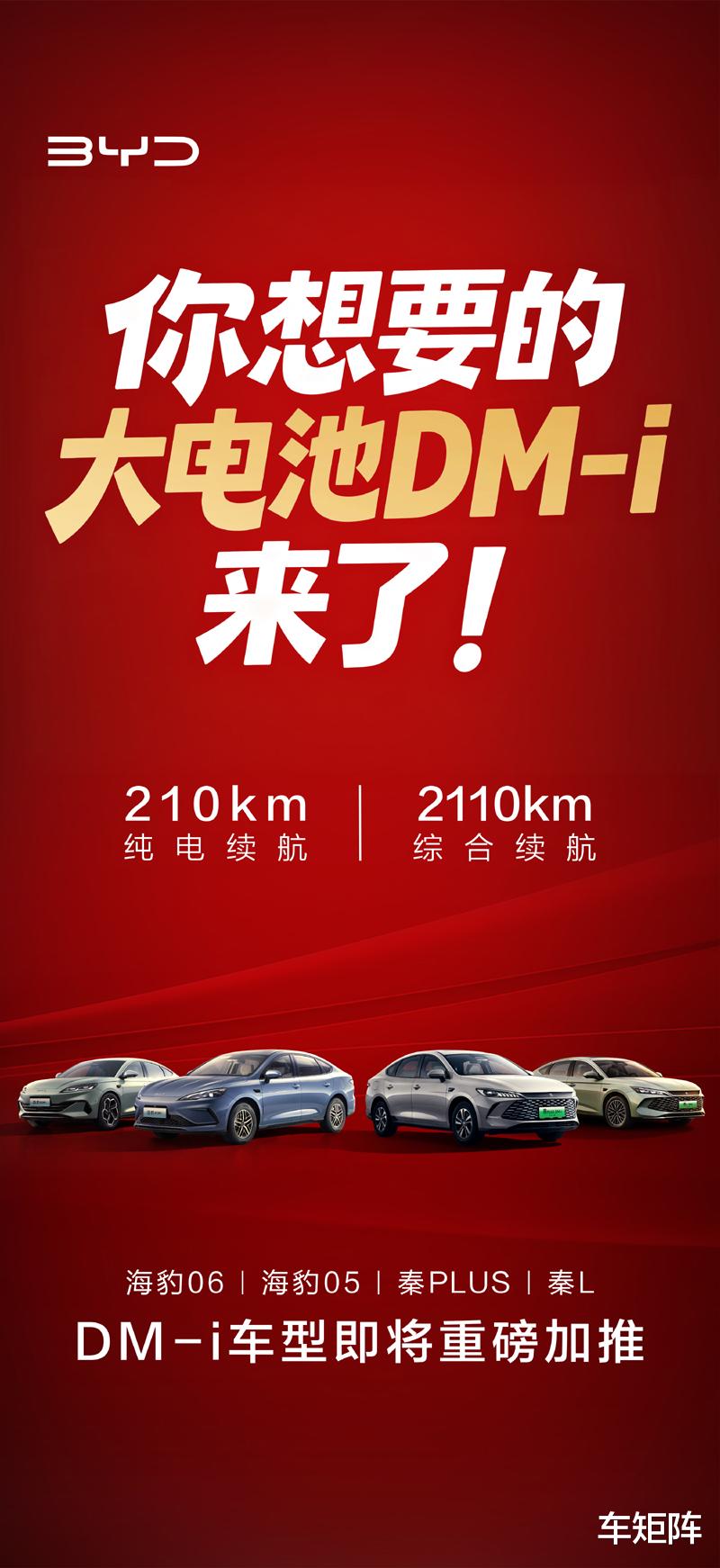 首批搭载比亚迪刀片电池大电池包的4款车型分别是秦PLUS DM-i、秦L DM-i、海豹05 DM-i及海豹06 DM-i,CLTC纯电续航均突破210km,相较同级插电混动车型其纯电续航里程翻一倍,实现“一周一充”,综合续航超2110Km,能全面覆盖日常通勤和长途出行全场景,完全消除里程焦虑,并且支持快充,20分钟即可从30%补能至80%。