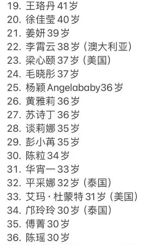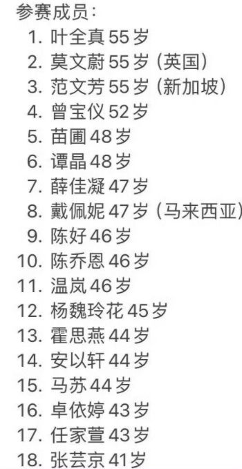 我们可以看到:莫文蔚、曾宝仪、谭晶、薛佳凝、陈好、陈乔恩、杨魏玲花、霍思燕、任家萱、徐佳莹、姜妍、毛晓彤、苏诗丁等人,看到这份名单,很多网友都表示:节目组要是将她们都邀请过来,我必看第六季。