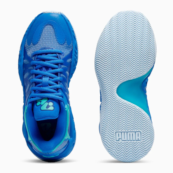 鞋面上的BC Logo巧妙的采用了淡蓝色进行点缀,与鞋面色彩形成呼应的同时也能够很好的展现出鞋履品牌;鞋履的科技方面采用了目前Puma最为优秀的篮球鞋技术,包括NITRO Cushioning等优秀的缓震,让鞋履能够在实战中保持较为出色的状态。