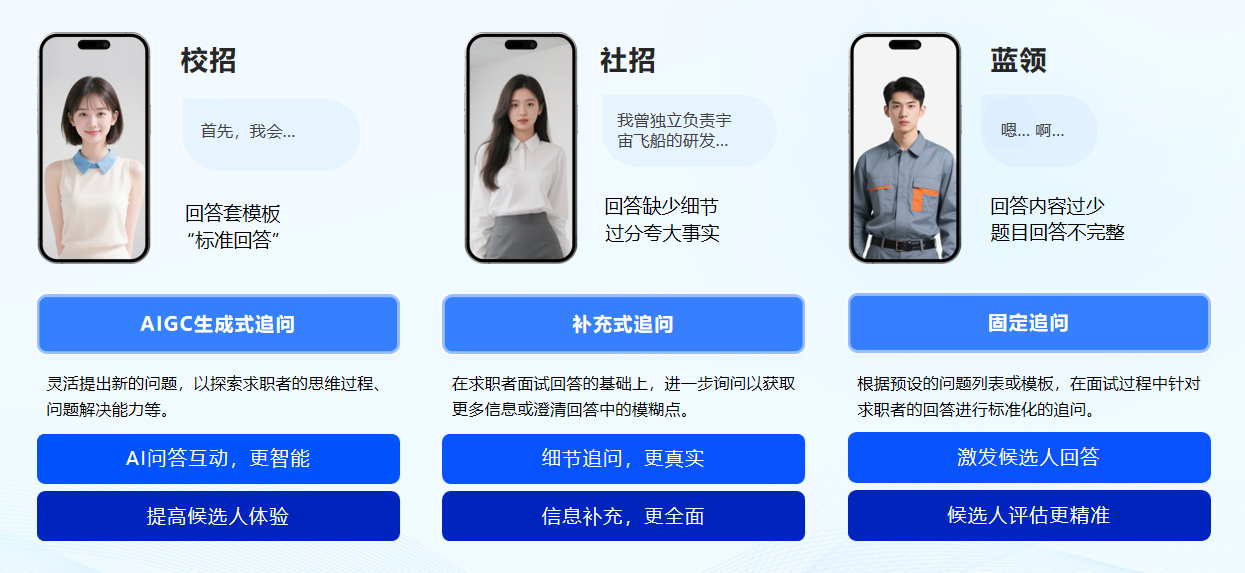 HR的精力被耗散:要求HR针对每一份简历设计个性化深度问题,在海量候选人面前几乎不可能。多数时候的HR只能凭经验、临场反应提问,问题质量参差不齐,既无法触达候选人的能力核心,也消耗了大量用于“判断与观察”的精力。