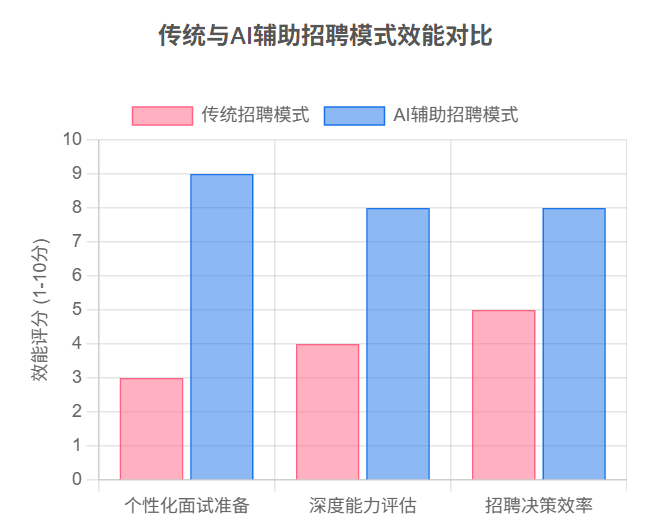当技术帮助我们解决了如何提问的难题后,HR可以将更多精力投入到倾听、观察和判断上。这种转变带来的价值是显而易见的。海纳AI面试官在某全国连锁零售客户的AI面试项目中,对比了传统模式与AI辅助模式在几个关键环节的效能表现,结果十分显著。