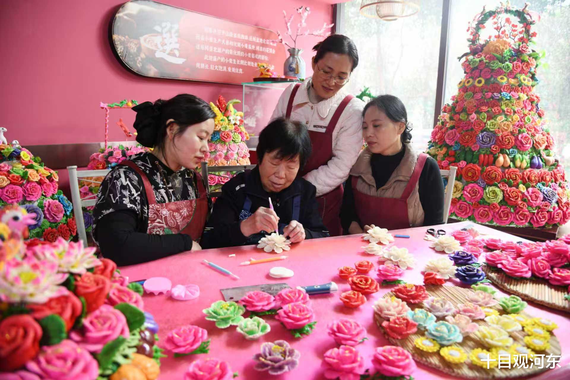 非遗的生命力在于活化与传承。近年来,闻喜县将花馍产业作为推进农业现代化、赋能乡村振兴的重点工程,通过政策扶持、技艺培训、品牌培育三维发力,让千年手艺成为富民兴村的“金钥匙”。当地持续举办花馍技艺培训班,聘请非遗传承人面对面传授捏塑、蒸制、着色等核心技艺,累计培育5000余名农村妇女成为手工花馍加工能手,她们足不出村即可实现灵活就业、稳定增收,形成“培训赋能+居家创作+集中销售”的良性产业生态。如今,闻喜花馍已形成成熟产业链,不仅通过“好运诚品”等区域公用品牌拓展市场,更多次登上央视舞台、走出国门开展文化交流,年销售额稳步增长,成为非遗赋能乡村振兴的典型样本。