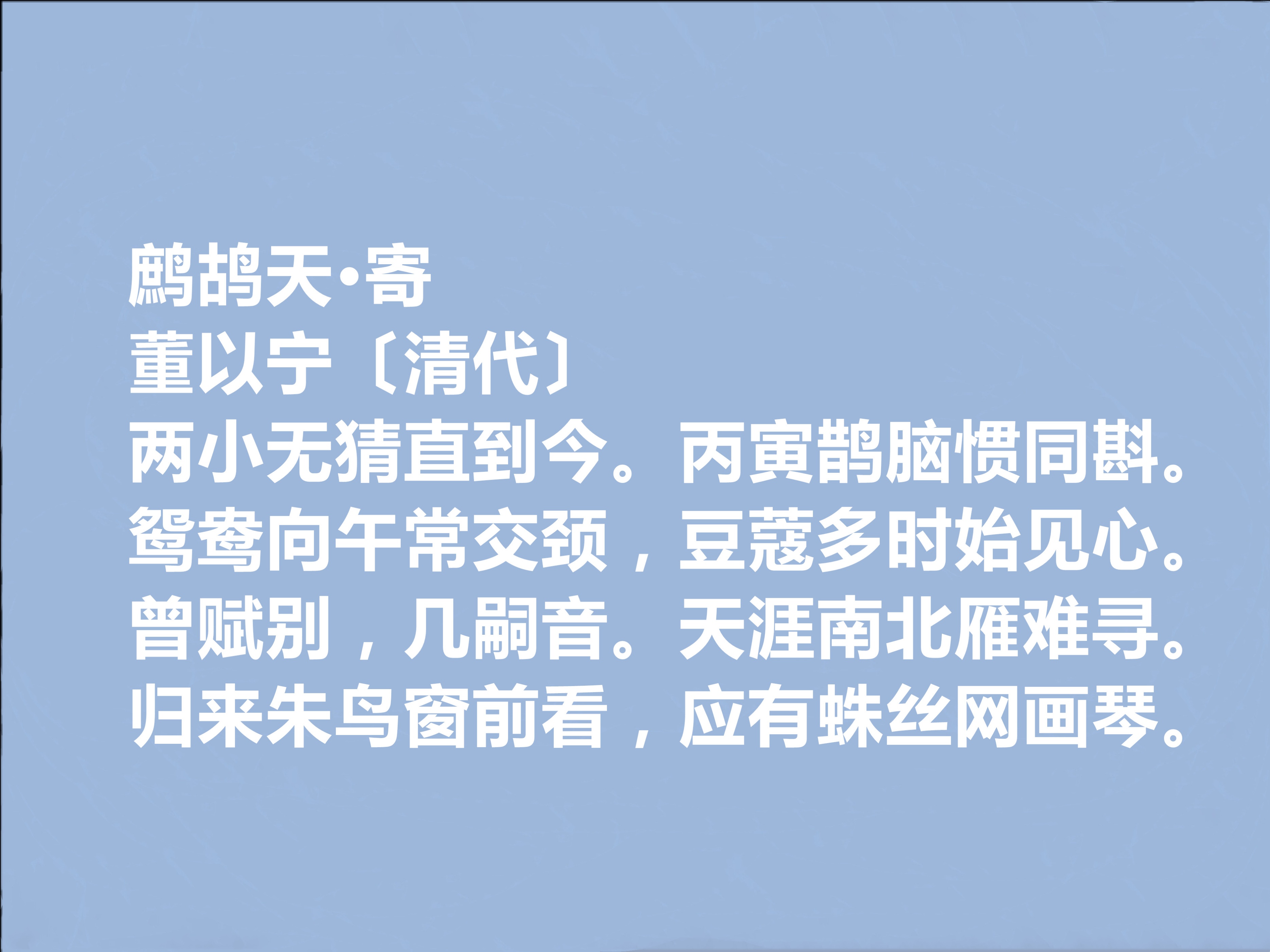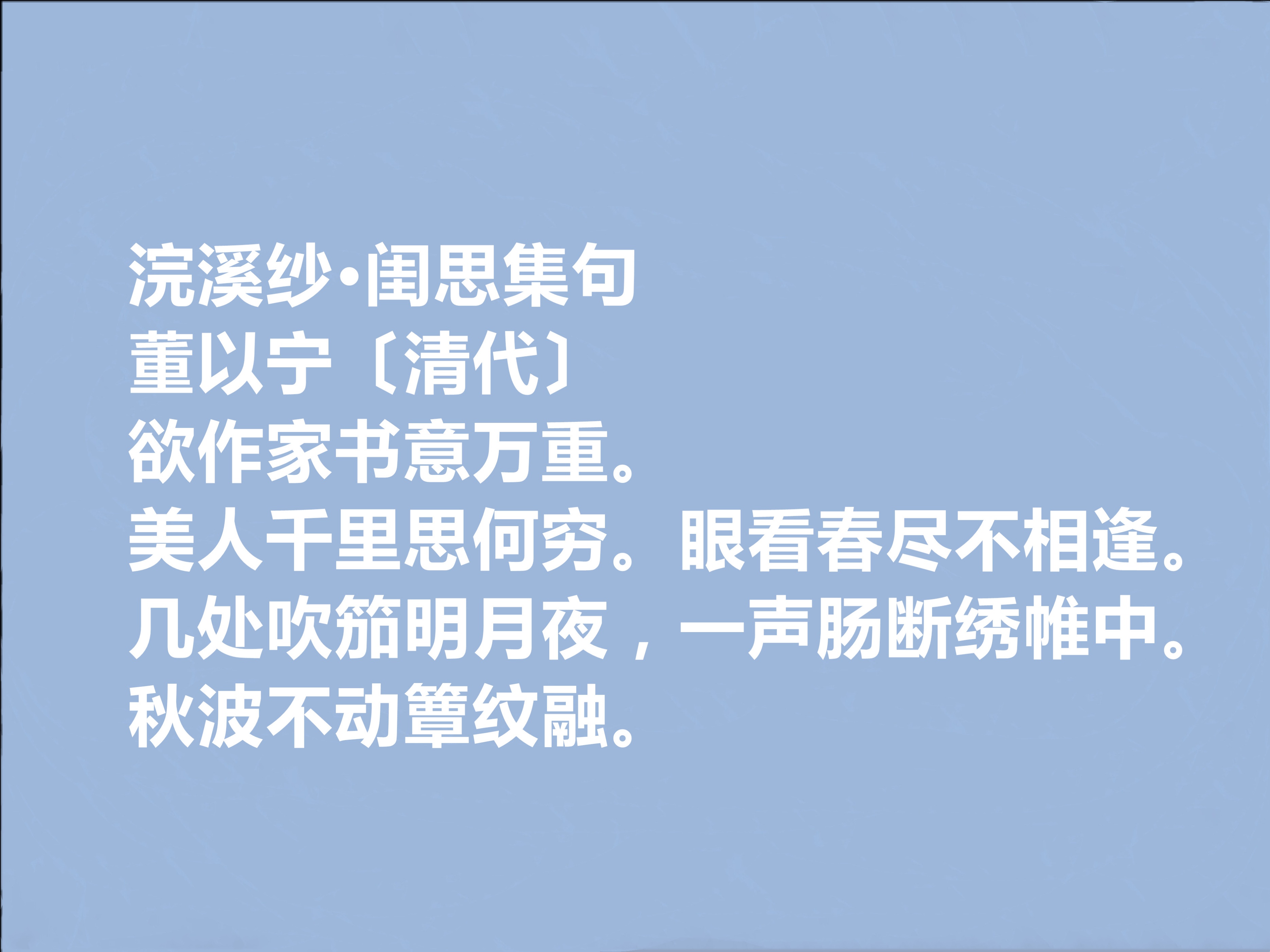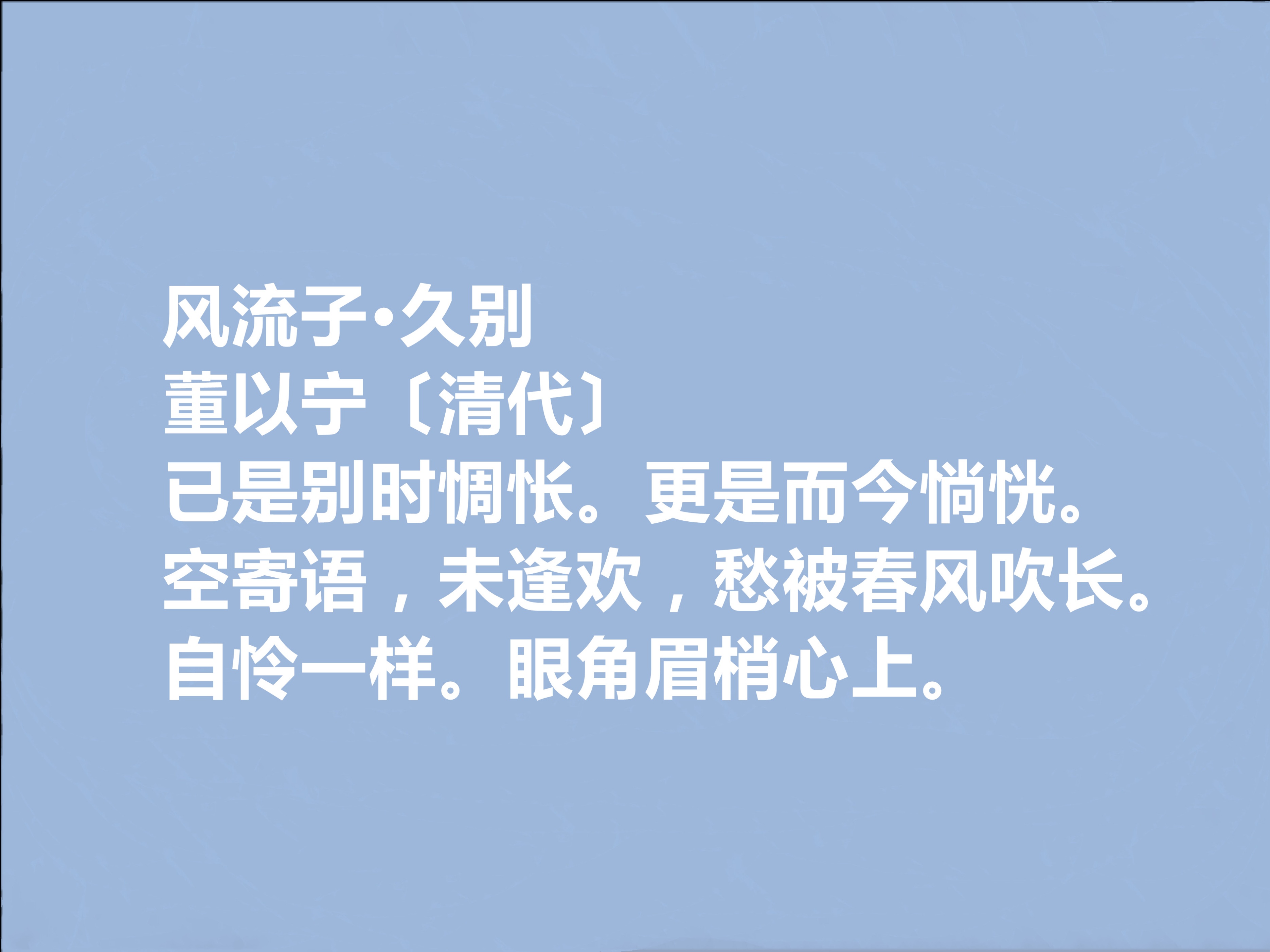 董以宁是清初江南词坛的核心人物,与陈维崧、邹祗谟、黄永并称 “毗陵四子”,又与邹祗谟齐名号 “邹董”,是阳羡词派的重要先驱,在顺治至康熙初年的江南文坛占据显要位置。今天,我们来欣赏他的十首词。
