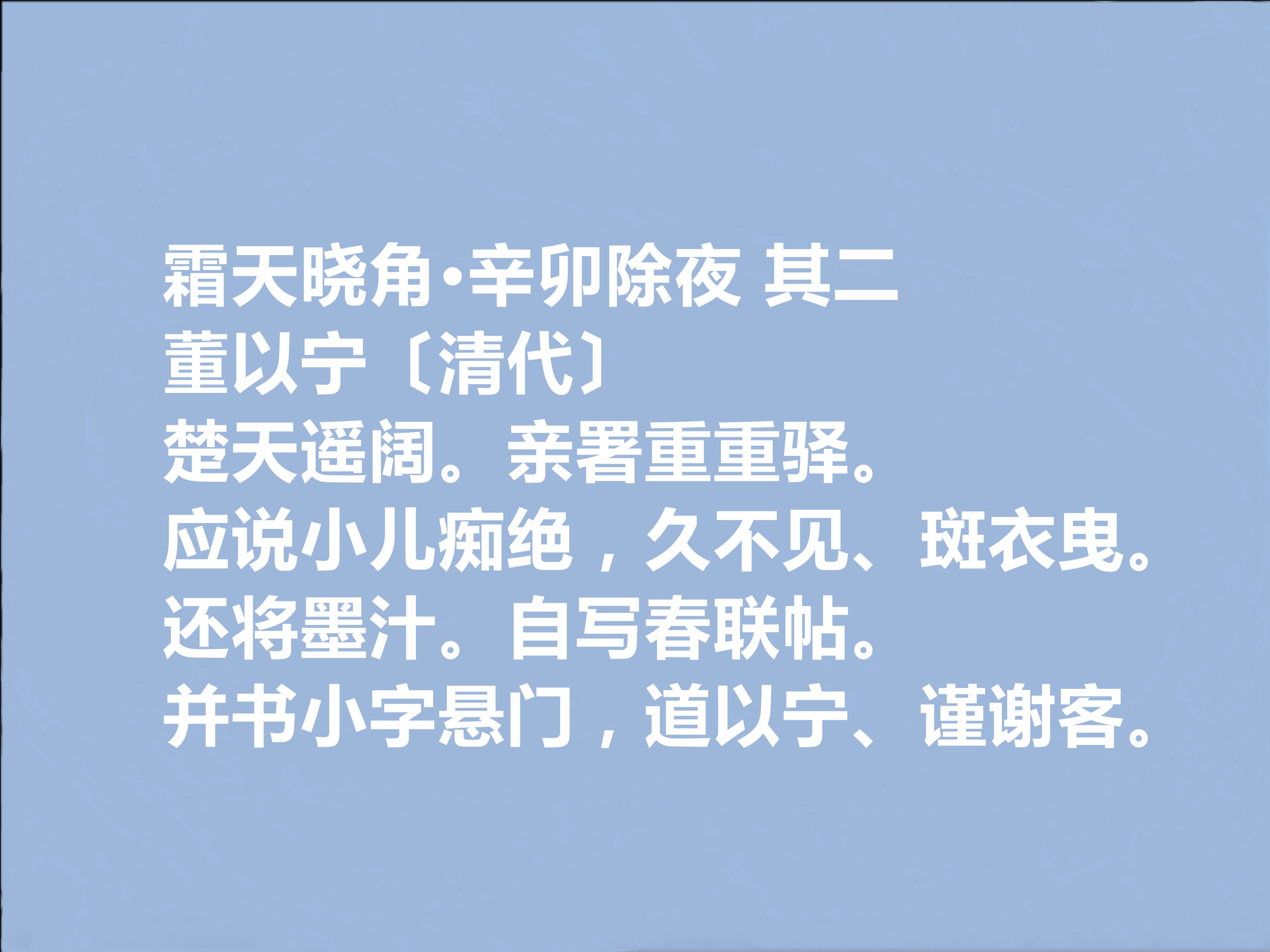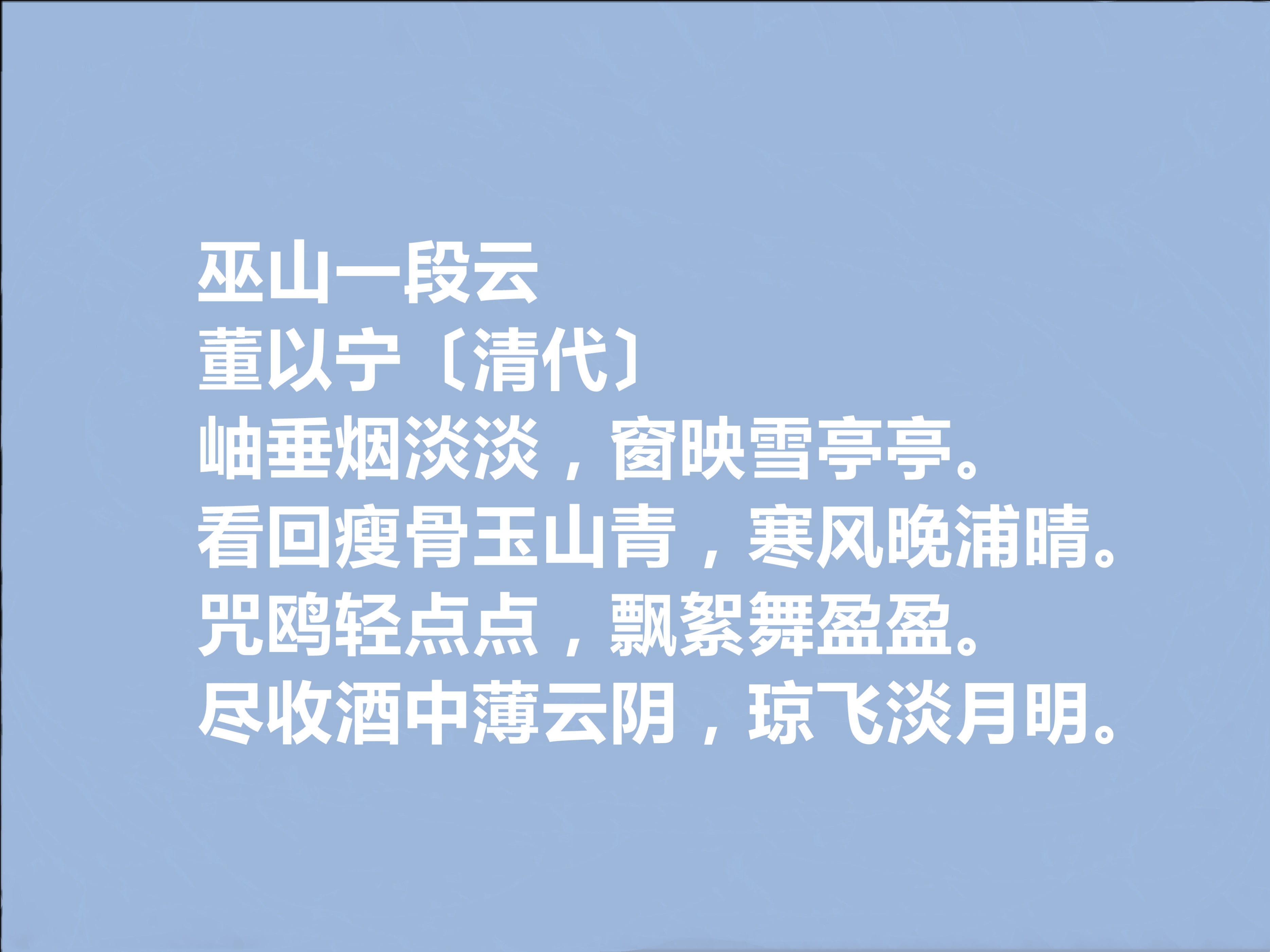 关于他有两则颇有趣味的轶事:其一,他与陈维崧结为至交,一日二人同游惠山,陈维崧即兴作骈文千言,董以宁当场和之,文辞更胜一筹,引得围观士子拍案叫绝,“骈体双璧” 的美誉由此传开;其二,他擅长回文词创作,所作《卜算子・雪江晴月》倒读即成《巫山一段云》,平仄和谐、意境依旧,时人争相抄录,传为词坛佳话。