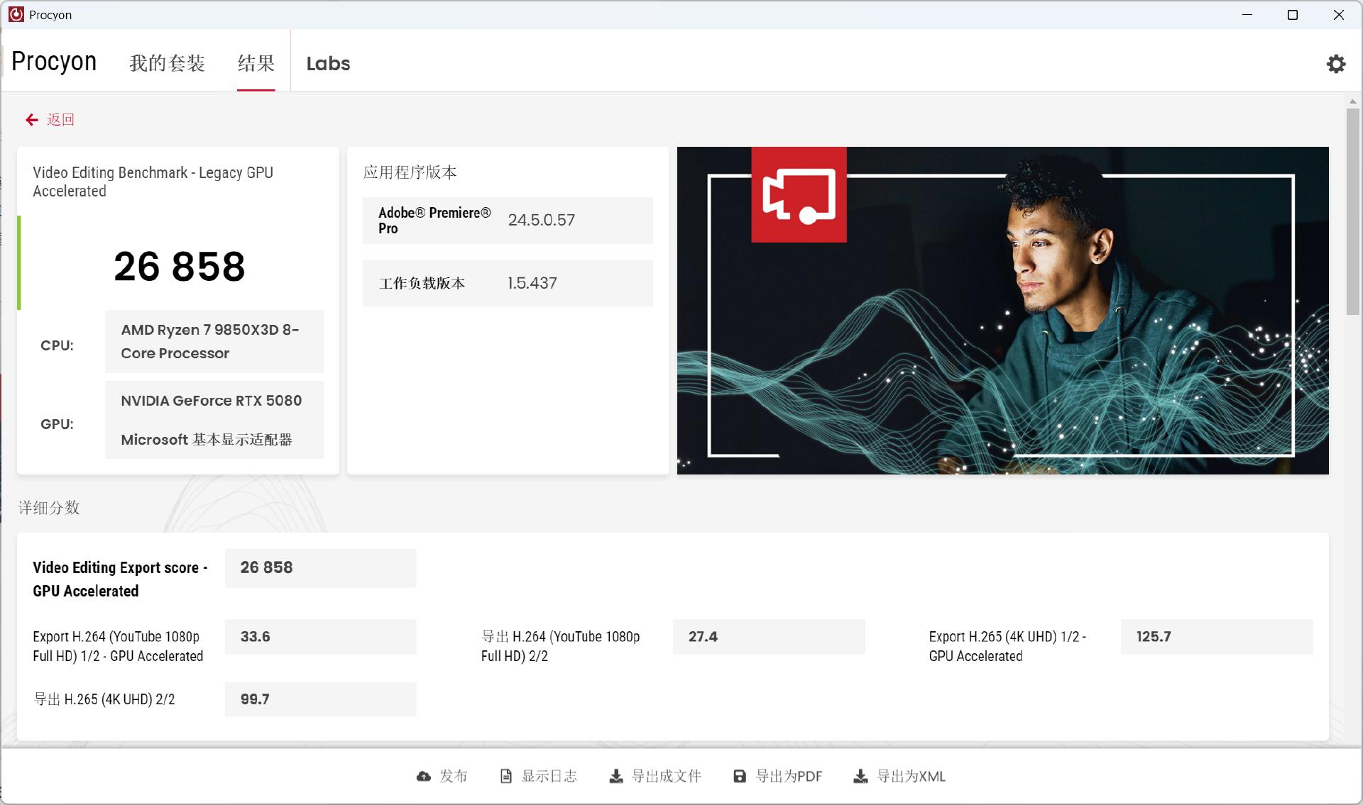 针对Adobe Premiere的视频剪辑基准测试分数:26858