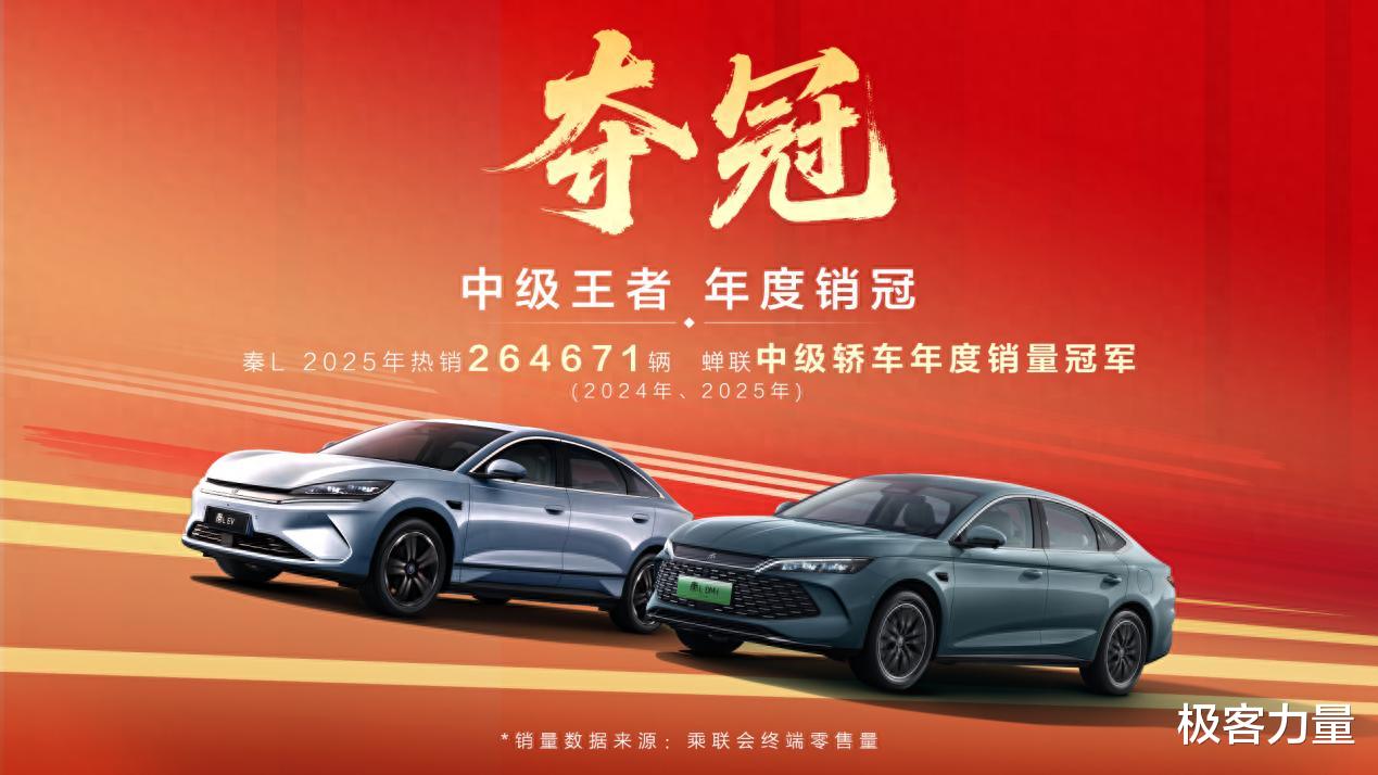 乘联会2025年度销量榜单揭晓,比亚迪秦家族斩获双冠:秦PLUS以387,315辆蝉联紧凑级轿车年度销冠,秦L以264,671辆登顶中级轿车市场。2026年初,秦家族再添新丁,推出DM-i纯电210KM长续航版,起售价8.98万元,在电池成本上涨背景下尽显品牌担当。