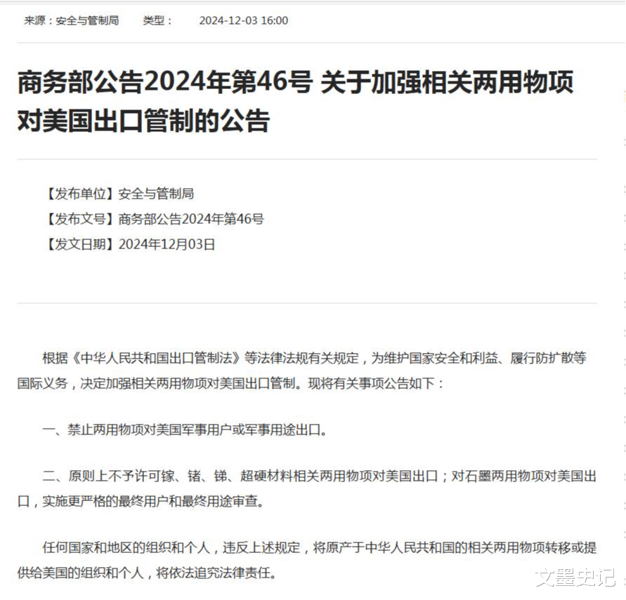 第二天,中国商务部便出台禁令,“卡住了”美国的关键资源供应,让美国军工体系不得不面对“资源荒”的严峻现实。“道高一尺魔高一丈”你在成品上“做文章’,那我直接把原材料给“卡了”!