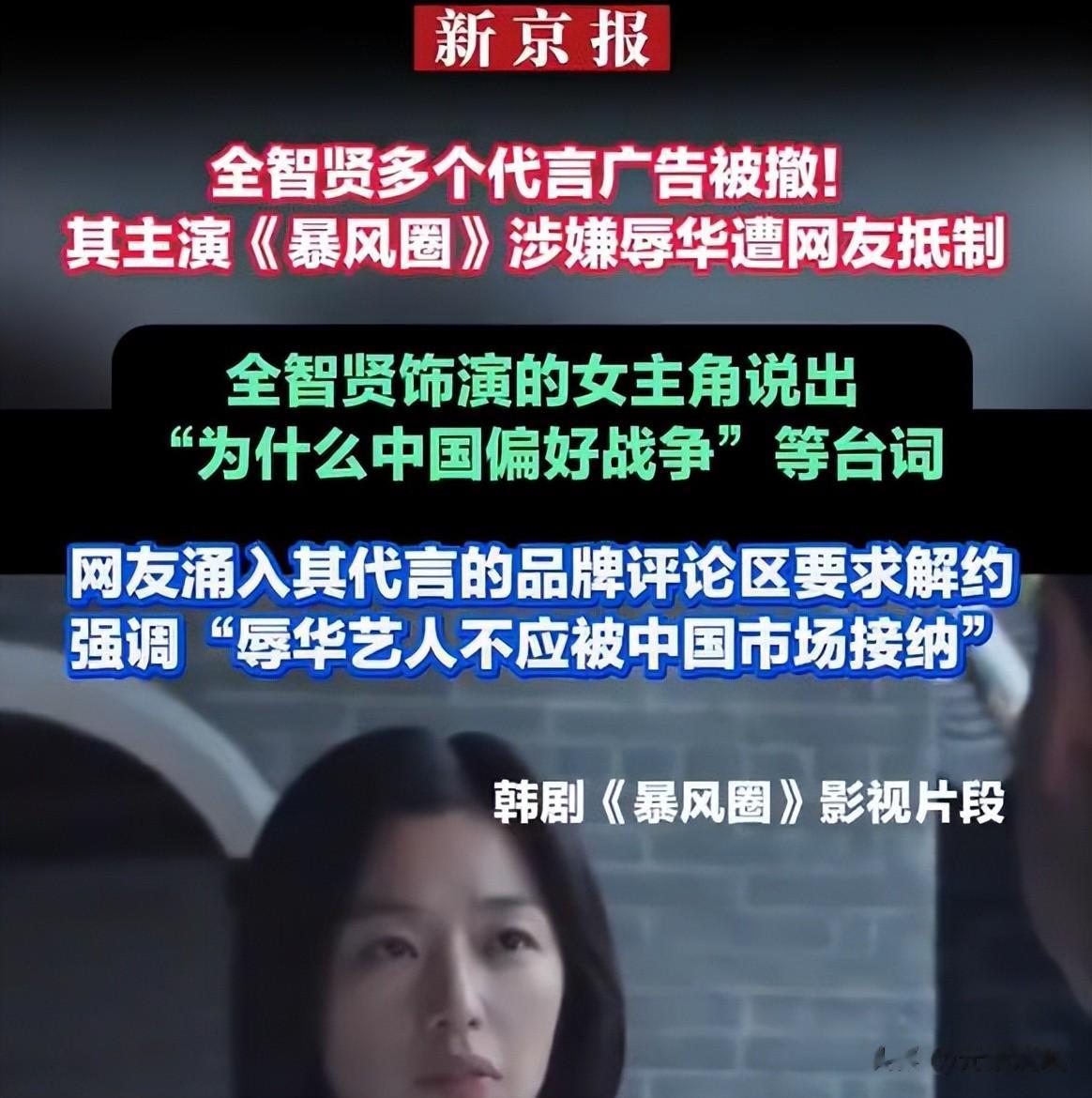 参考来源:新京报 全智贤被网友抵制,多个品牌已删除其代言广告