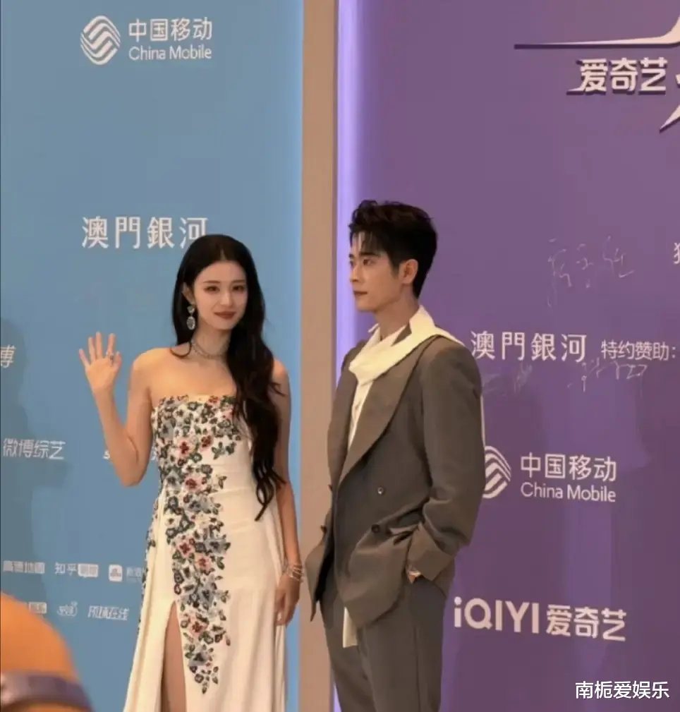 更令人惊喜的是她与搭档丞磊的互动。两人携新剧《成何体统》同台亮相,红毯上默契十足,现场模仿剧中“猪叫暗号”,清冷美人突然露出俏皮wink,反差萌直接拉满。这一幕不仅点燃粉丝对新剧的期待,也让她的“冷艳脸+甜心魂”人设深入人心。从高定礼服的贵气逼人,到后台提裙滴药的豪爽自然,王楚然用一场活动演绎了两种极致状态,这些即兴互动,让她的形象更加立体、鲜活。