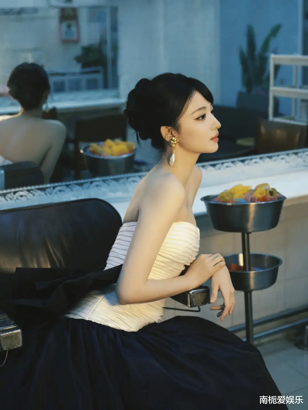 生图状态甚至被赞“越怼脸越美”,肌肤通透度与骨相立体度甚至超越精修,被封为“越怼脸越美”的“红毯战神”。工作室后续释出的“对镜自照”图更以虚实交错的构图,赋予造型电影般的叙事感,将她的红毯高光定格为年度经典画面。