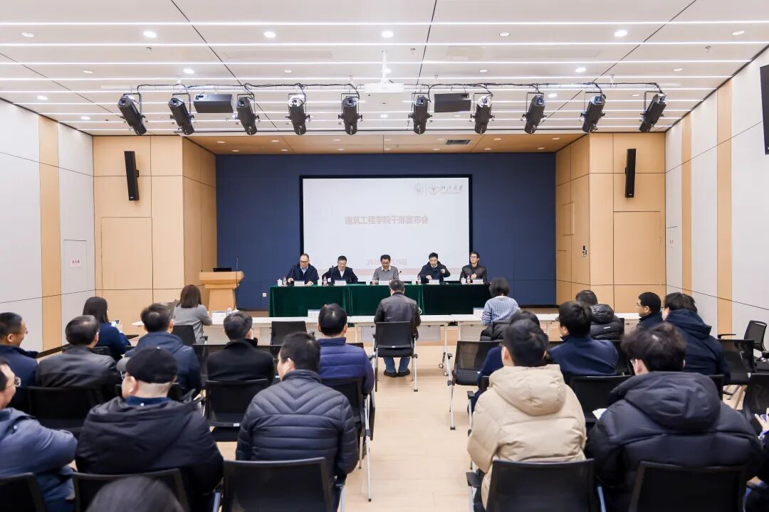 2026年1月28日上午,浙江大学建筑工程学院干部任免宣布会在紫金港校区安中多功能厅举行。副校长夏群科出席会议并讲话。校党委组织部相关负责人宣读任免文件。学院领导班子成员、党委委员、纪委委员、各研究所(中心)负责人、教工党支部书记、高层次人才代表、机关科室负责人及教师代表等参加会议。会议由学院党委书记陈海荣主持。
