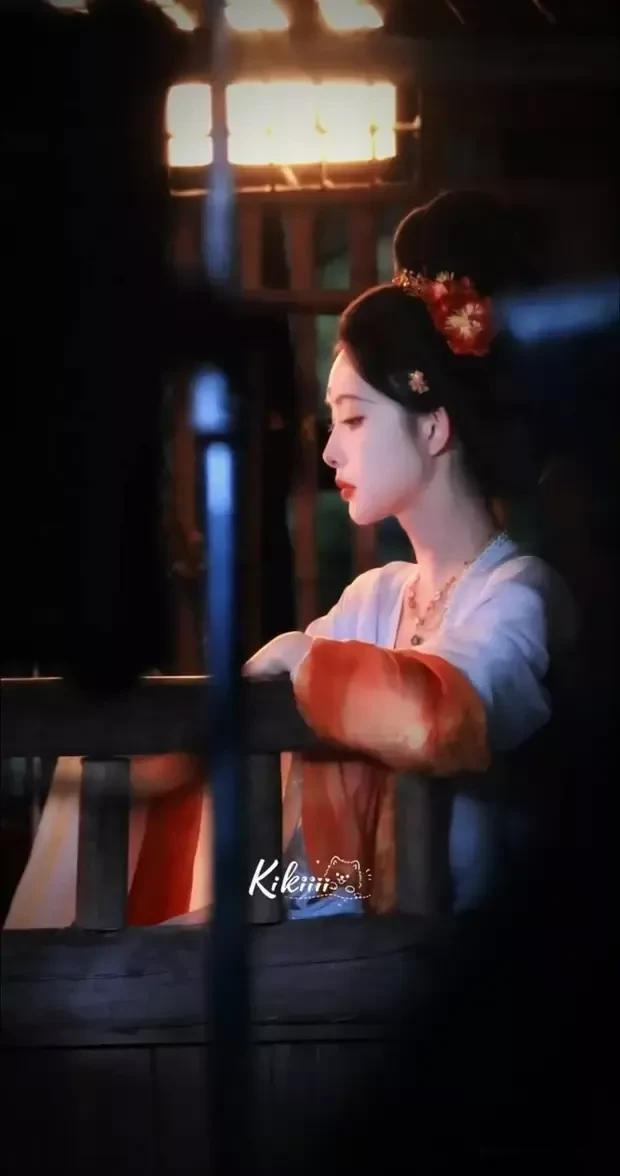 其中一张月下饮酒的路透更是惊艳全网:她斜倚在雕花栏杆边,手中琉璃盏里盛着琥珀色的酒液,仰头饮酒时喉结轻动,月光洒在她精致的侧脸上,下颌线清晰如刀削。有网友截图放大后发现,她连耳后都细致地化了碎钻妆,在夜色中闪烁着细碎光芒,这细节控程度简直让人瑞思拜!而当她凭栏沉思时,微蹙的眉头和望向远方的眼神,又瞬间切换成"易碎感美人"模式,仿佛有诉不尽的心事藏在眼底。