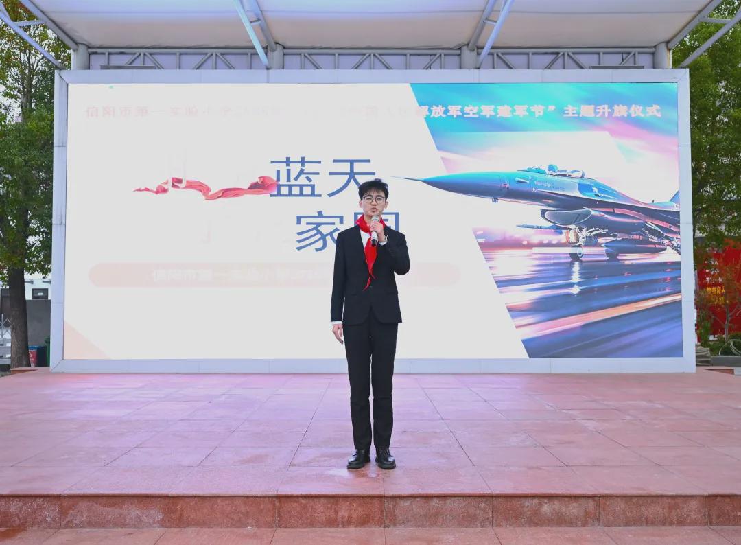 当晨光为校园镀上金边,当五星红旗迎着秋风冉冉升起,信阳市第一实验小学的操场上,一场以“翱翔蓝天 守卫家园”为主题的空军建军纪念日升旗仪式,在师生们的注目下庄重举行。