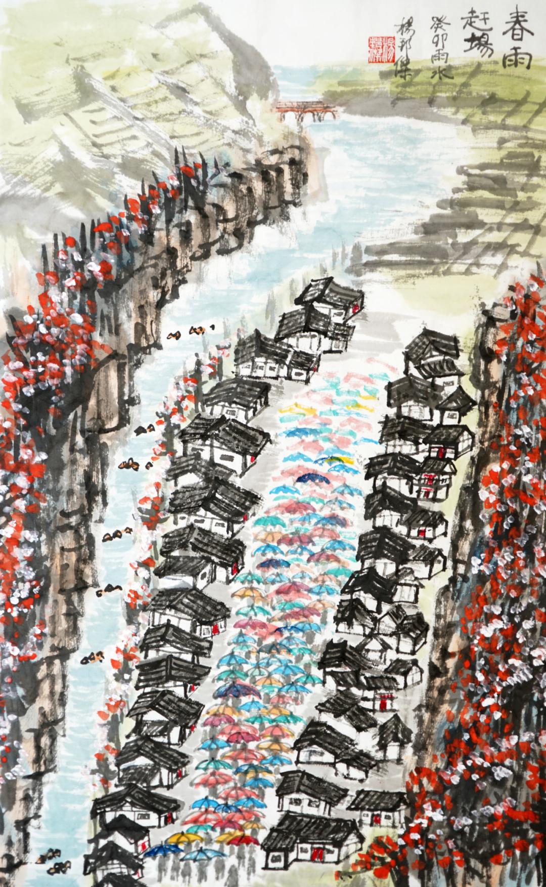 一夜春雨,山林郁郁葱葱。山上的野花也开了,五彩点缀山崖。 一夜春雨,集市更加兴旺。春雨季节总有许多新鲜的菜蔬,也有卖花的芬芳。