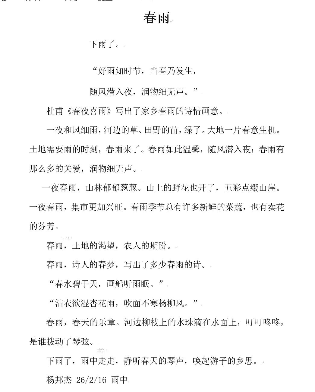 杨邦杰 2026/2/16 雨中