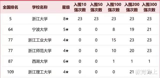 在这份榜单中,共计24所浙江省高校上榜,上榜高校既包括我国顶尖高校的浙江大学,也包括我国知名高校的宁波大学、浙江师范大学等。