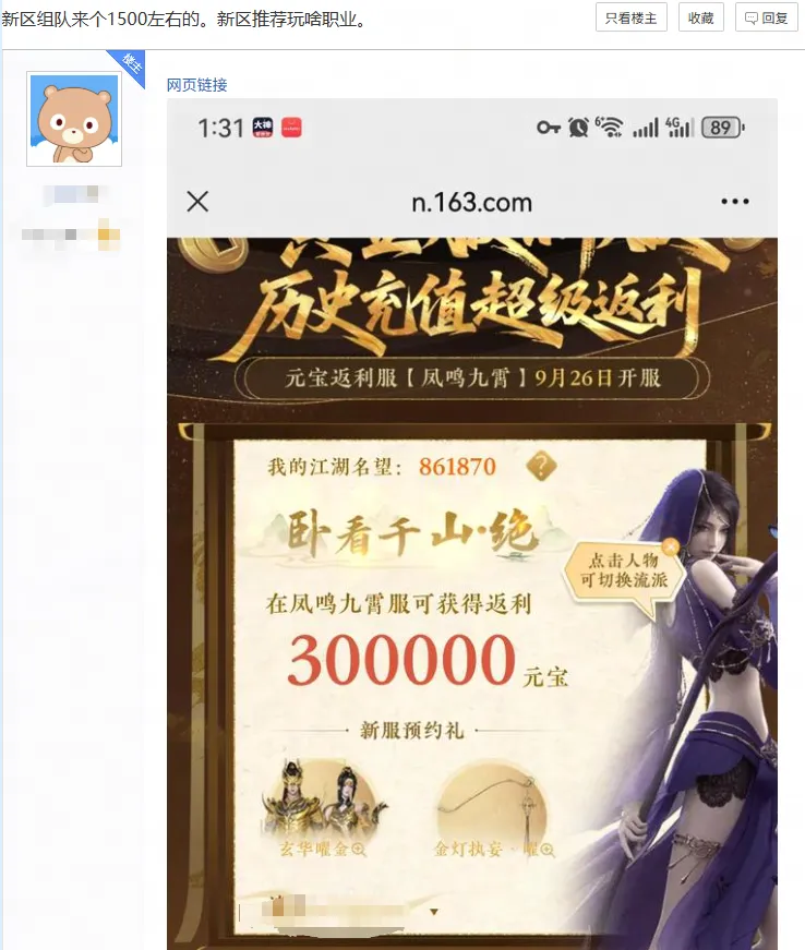 顾名思义,入驻【凤鸣九霄】大区的玩家,可享受《逆水寒》推出的返利福利,此前账号内的元宝充值金额与藏宝阁消费记录,均会按特定比例返还。从玩家分享的信息来看,此次返利比例诚意十足,不少玩家到手返利从数万元到十几万元不等,更有“神豪”玩家斩获最高300万的返利元宝,这样的力度在国内网游市场并不常见。