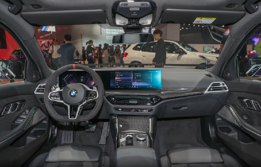进入宝马3系50周年限量版的座舱,中控台由多种元素拼接在一起,合理的布局使其看着并不凌乱。12.3英寸全液晶仪表与14.9英寸触控屏组成双联屏,悬浮在中控台上方,散发出浓郁的科技气息。触控屏搭载iDrive智能系统,拥有卫星导航、CarPlay手机互联以及双音区语音识别等功能,智能化程度能满足主流用户使用。真皮方向盘手感细腻,平底式造型与5系保持一致,握感相当舒适。方向盘拥有四向调节功能,而且正上方的红色回正标识相当显眼,在激烈驾驶时也能快速回正。左右两侧的多功能按键功能丰富,用户一伸手就能对其进行操作,便捷程度较高。