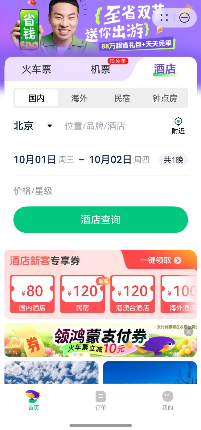 这个“元服务”是在桌面负一屏里的,不用单独下载App,用华为账号就能一键登录,非常方便。我就在负一屏里找到的“同程旅行”元服务,可以直接选酒店、日期,然后直接下单。在支付环节,我用华为钱包付款,那张10元优惠券就自动抵扣了。虽然不多,但这薅到旅游旺季羊毛的快乐,懂的都懂。