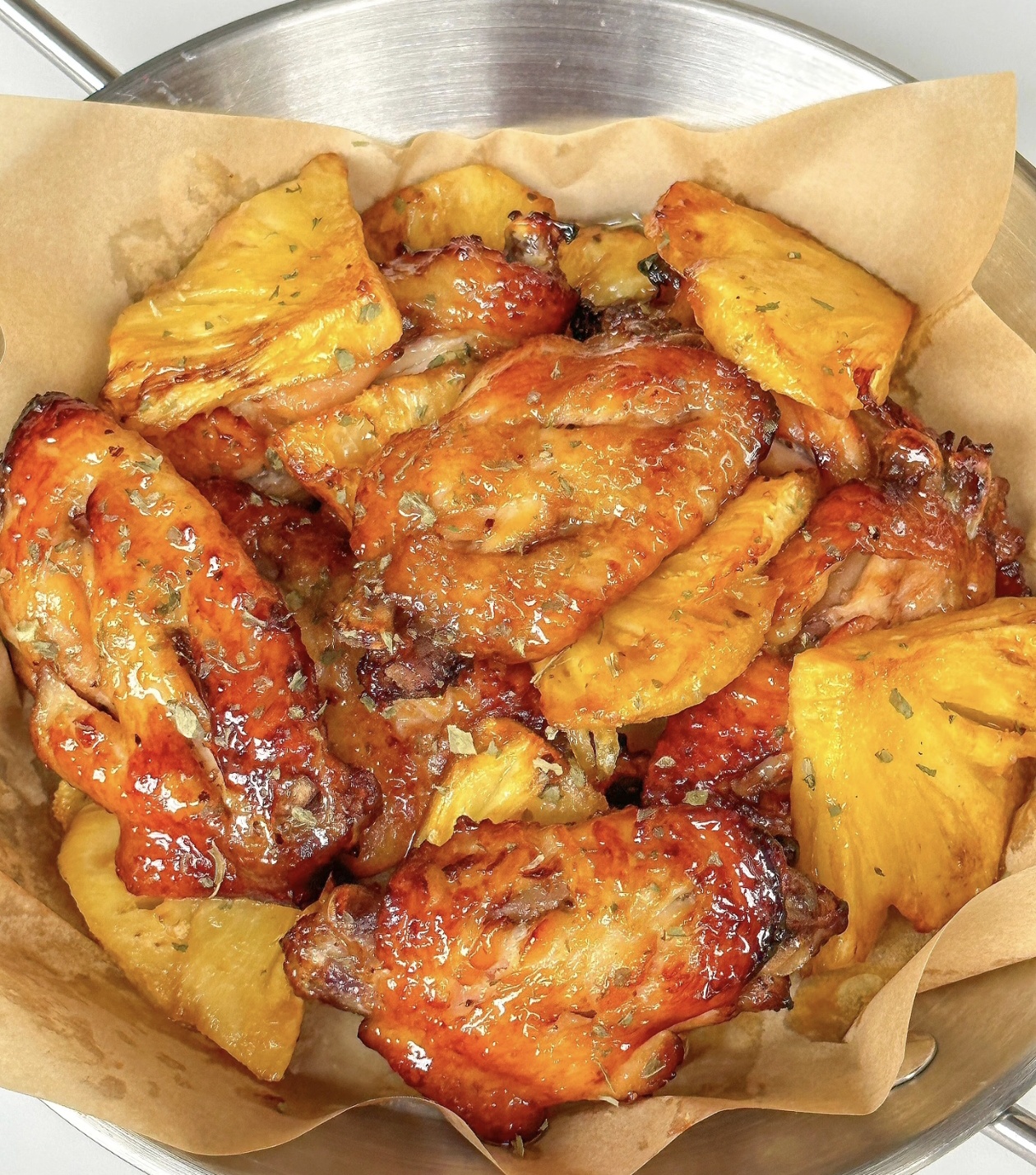 这道菠萝烤鸡翅没有复杂的步骤,也不需要昂贵的调料,只用空气炸锅就能轻松完成,无论是作为周末的家庭加餐,还是招待朋友的下酒菜,都格外合适。它用最简单的方式,把水果的清甜和肉类的鲜香完美融合,让家常餐桌多了一份不一样的惊喜。当你疲惫的时候,不妨试试这道带着果香的烤鸡翅,让酸甜的味道治愈生活里的小烦恼,毕竟没有什么烦恼是一口焦香多汁的鸡翅解决不了的,如果有,那就再来一块烤得软糯的菠萝。