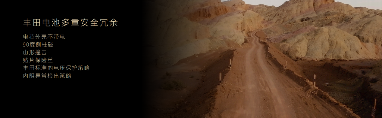 其中,车内车外门把手均配备双重解锁机制,将所有门把手机械+电动二合一,使门把手具备安全冗余设计,极端情况下断电依旧可以利用机械方式打开。车身采用碰撞安全冗余设计,做到行业唯一90°侧柱碰后电池0侵入0起火,丰田还首创超国标“山形碰撞测试”用于验证电池底部碰撞安全。电芯四重防护、电池四层防热扩散、电池上盖特殊设计和广丰反向驻场育成电池供应商,这些均是针对电池壳体和电芯安全的冗余设计与做法。