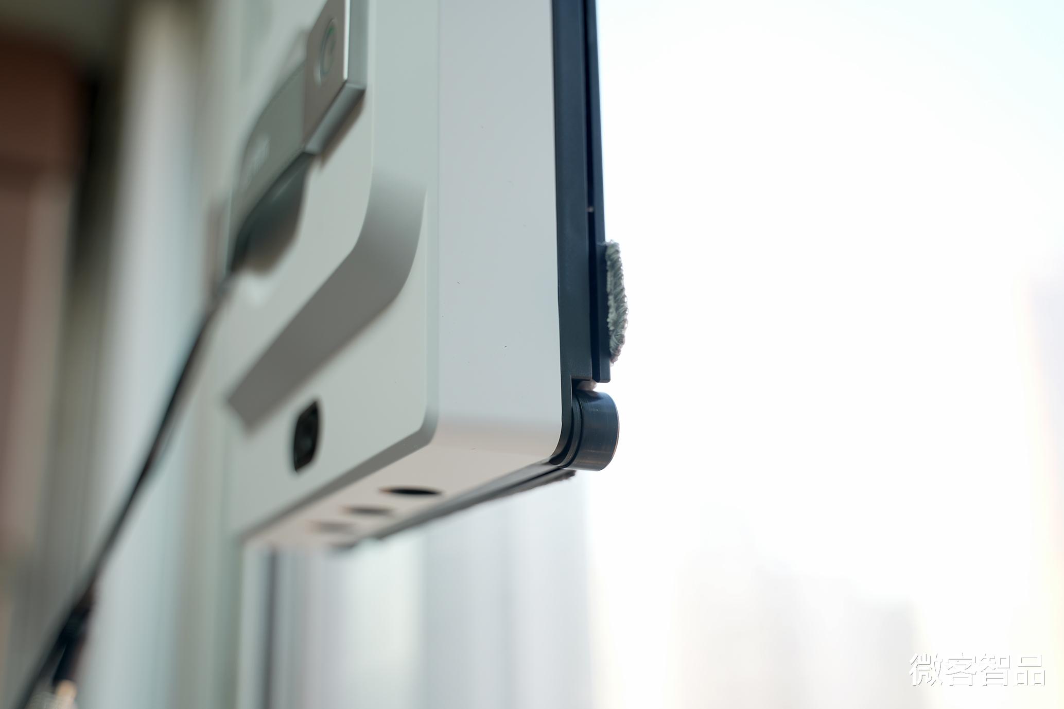首先是1+2 负压稳固联动吸附,我第一次把它放玻璃上,按了启动键,它 “嗡” 一声吸住后,我试着掰了掰,居然纹丝不动!后来查了才知道,它有一个主舱负责抽真空,还有两条履带辅助贴合,哪怕玻璃有点弧度,也能牢牢锁在上面,擦的时候不会打滑漂移,我站在屋里看着,一点都不慌。
