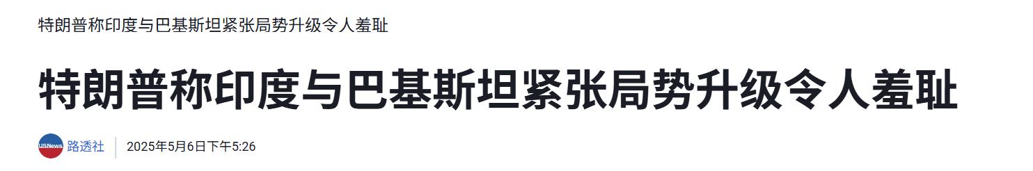 自从这一轮印巴关系持续紧张开始,国际社会就一直在劝双方冷静与克制,其中也包括美国。美国国务卿马尔科·卢比奥上周还在鼓励印度和巴基斯坦:“相互合作”,“缓解紧张局势”。但是,很显然,美国的劝也没有能够拦住印度动手。在5月7日印度突袭发生后,美国总统特朗普也就印军这次军事行动发表讲话。他在开头用了一个很重的词:耻辱!这很显然表示了特朗普的愤怒。