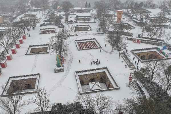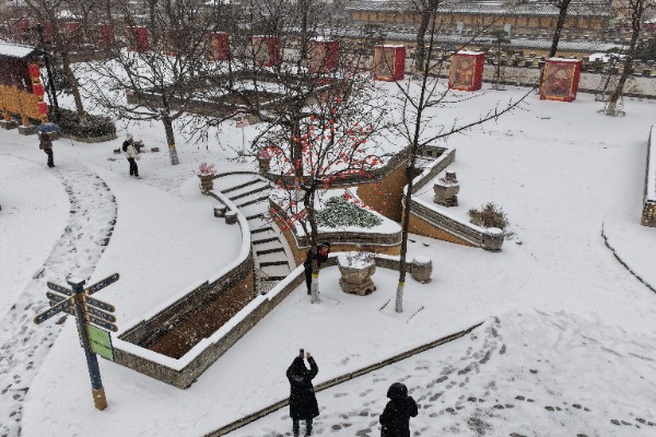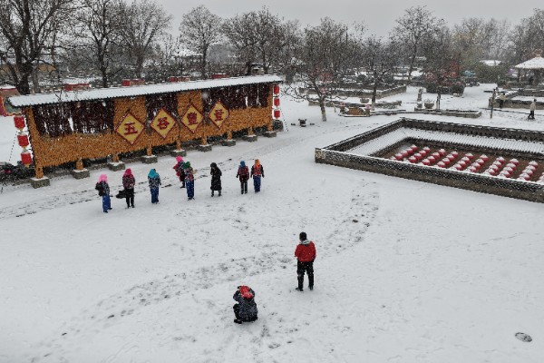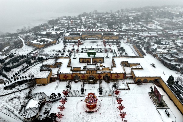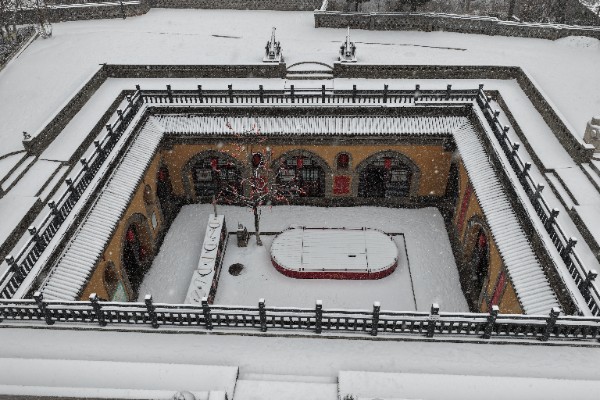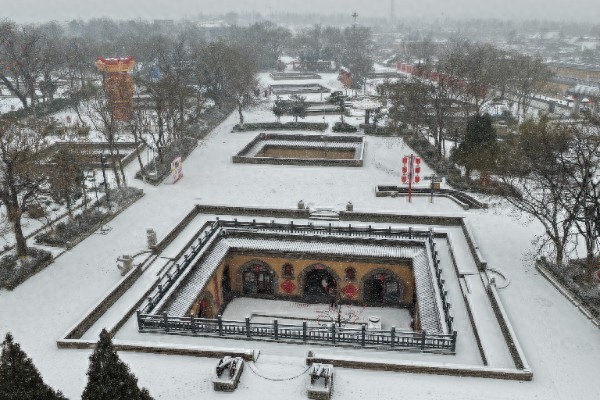 12月12日,一场小雪过后,三门峡市陕州地坑院景区银装素裹,古老的地坑窑院与白雪相映成趣,构成一幅静谧安详的冬日画卷。