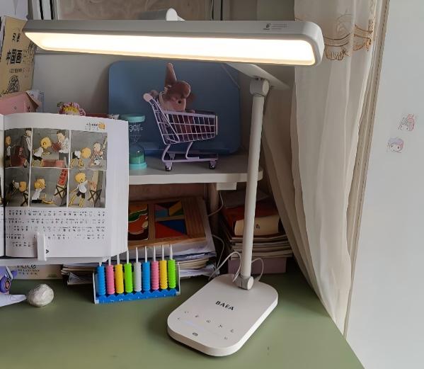 孩子的护眼灯哪种好?BAEA X5这款护眼灯走的是经典耐看的简约路线,整机以纯白为主色调,没有花里胡哨的装饰点缀,不管摆在家用书桌还是办公桌面都不抢镜,属于那种长期用也完全不会审美疲劳的百搭款。机身用了铝合金+ABS的复合材质,圆柱形灯臂让整机看着格外轻盈,同时整灯的重量控制得很到位,日常挪动或换位置都特别省力,单手就能轻松操作。细节上也很用心,关键转轴部位都用了金属结构件,调节角度的时候手感顺滑不卡顿,调完之后稳定性也很在线,完全不会出现松垮晃荡的情况。灯臂长度接近40cm,配合侧向发光的光学方案,光线经过反射和扩散匀化处理后柔和又均匀,实际能完整覆盖约1米长的桌面,应对日常学习读写、居家办公的基础照明需求,基本没有压力。