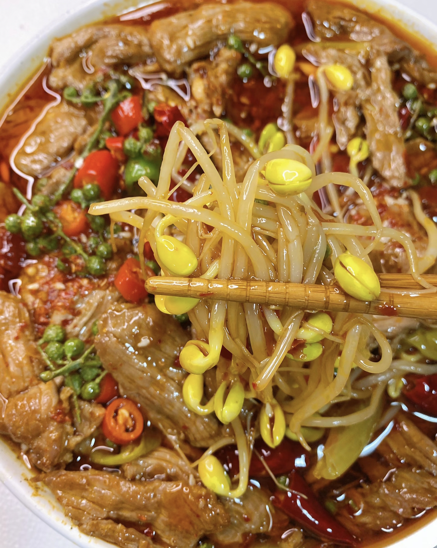 制作这道菜就像组建一支武林高手队伍,主角当然是鲜嫩的牛里脊(记得选纹路清晰的雪花肉),配角有脆生生的莴笋片、金针菇,豆芽等等,还有灵魂三件套:郫县豆瓣酱、火锅底料、青花椒。