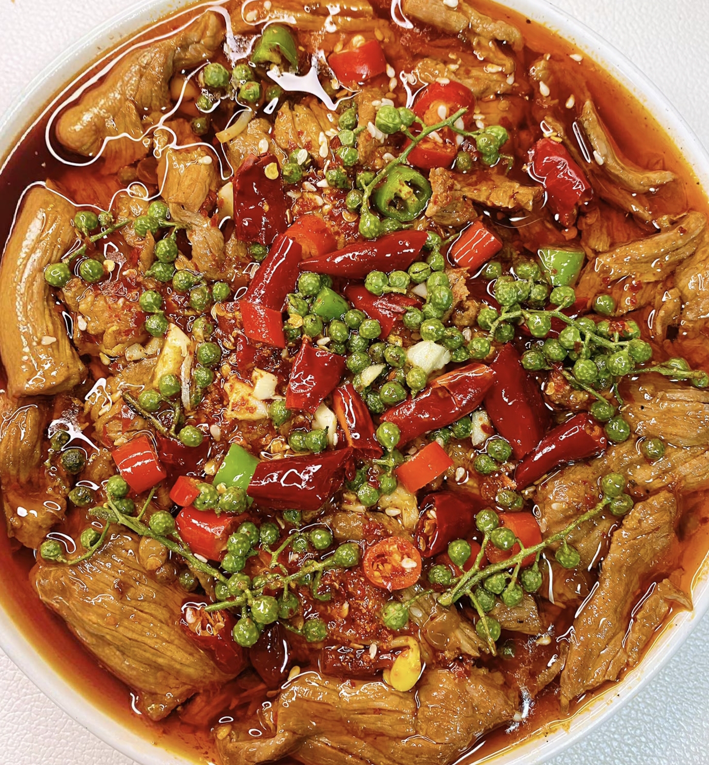 "滋啦"当滚烫的红油浇在青花椒上的瞬间,整个厨房都炸开了麻辣鲜香的烟花。这盆红彤彤、油亮亮的水煮牛肉,是川菜江湖里最豪迈的侠客,也是我家餐桌上最受欢迎的"气氛组组长"。今天就让我带着大家解锁这道看似高深莫测,实则简单易学的江湖菜,保证让你的厨房瞬间充满烟火气!