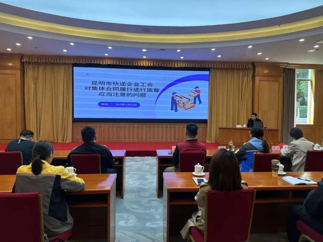 为确保监督责任落到实处,仪式刚一结束,昆明市总工会便趁热打铁,立即组织开展快递行业工会法律监督培训。培训紧扣集体合同的履行监督、劳动争议调解、法律政策应用等实务内容进行系统讲解,为来自各快递企业的工会代表及从业人员提供了坚实的理论支撑与实操指导。与会人员纷纷表示,培训内容及时、实用,为后续有效监督合同执行、依法维护职工权益注入了信心与能力。