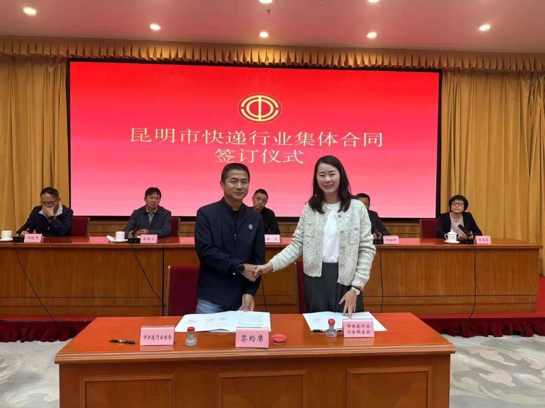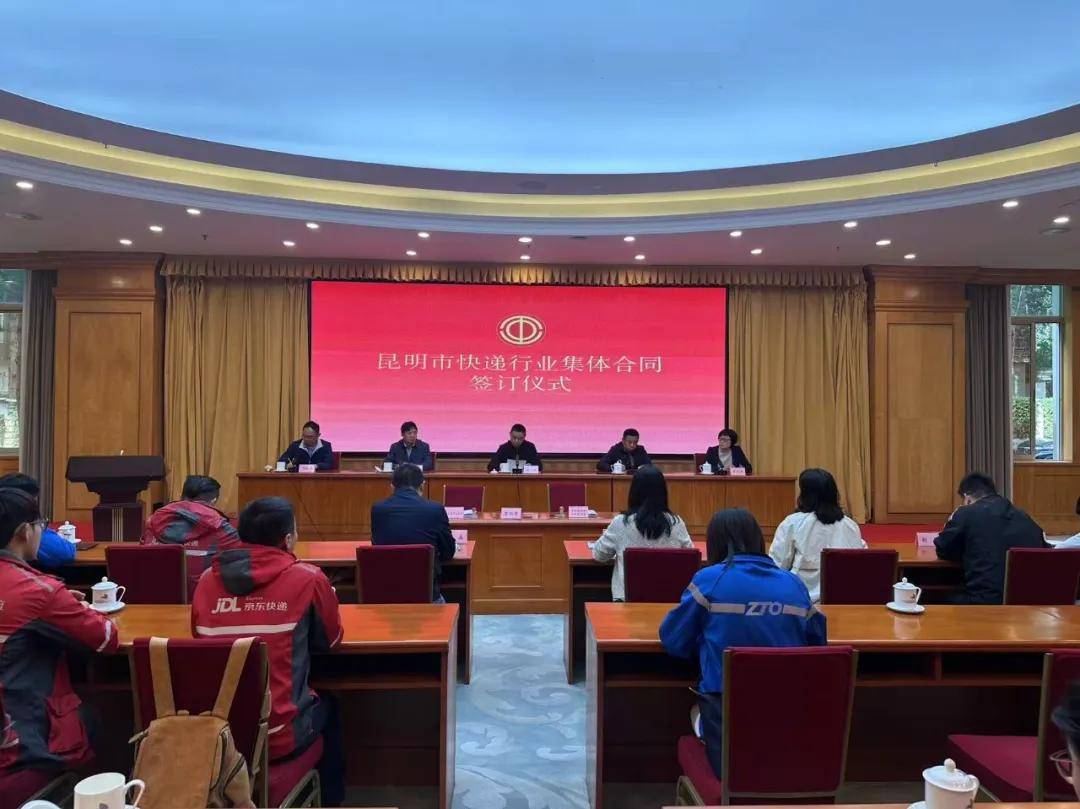 10月28日上午,在昆明市邮政管理局、昆明市总工会、昆明市人力资源和社会保障局的领导与支持下,在市总法律部和市财贸工会的具体指导下,昆明市快递行业工会联合会与昆明市快递行业协会举行集体合同签订仪式,共同签署了《昆明市快递行业集体合同》。此举标志着云南省首个快递行业集体合同正式落地。市邮政管理局、市总工会等单位领导,市总工会法律工作部、市财贸工会相关负责人及各快递企业负责人、职工代表共同出席,见证了这一重要时刻。