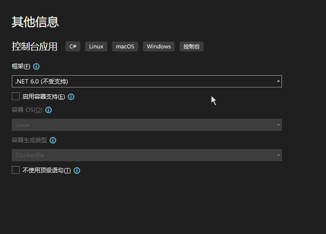 二、创建项目点击 文件 -> 新建 -> 项目,在弹出的窗口中,搜索模板:“控制台应用” 或者 ”Console App“。然后选择目标框架:.Net Core 或 .Net Framework (注。高版本如.Net 6 已经部分整合了.Net Core 和.Net Framework),最后输入项目名,保存。