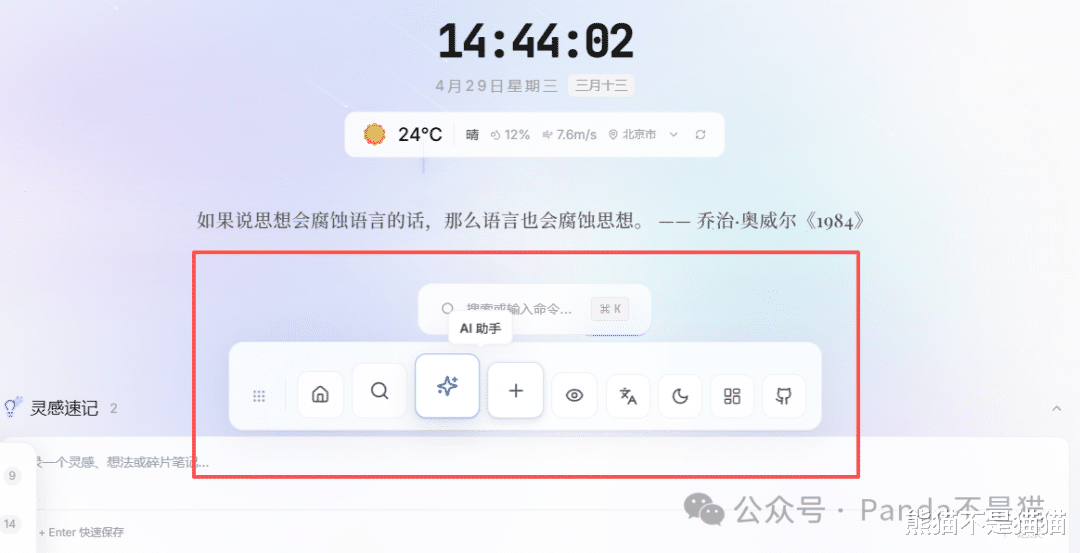 状态栏支持拖动到任意位置,同时点击最左侧可以将其缩放成球防止挡住当前的页面视野,在状态栏提供了首页、搜索、AI助手、添加书签、布局管理等等多种功能,同时还有类MAC一样的动效,非常不错。