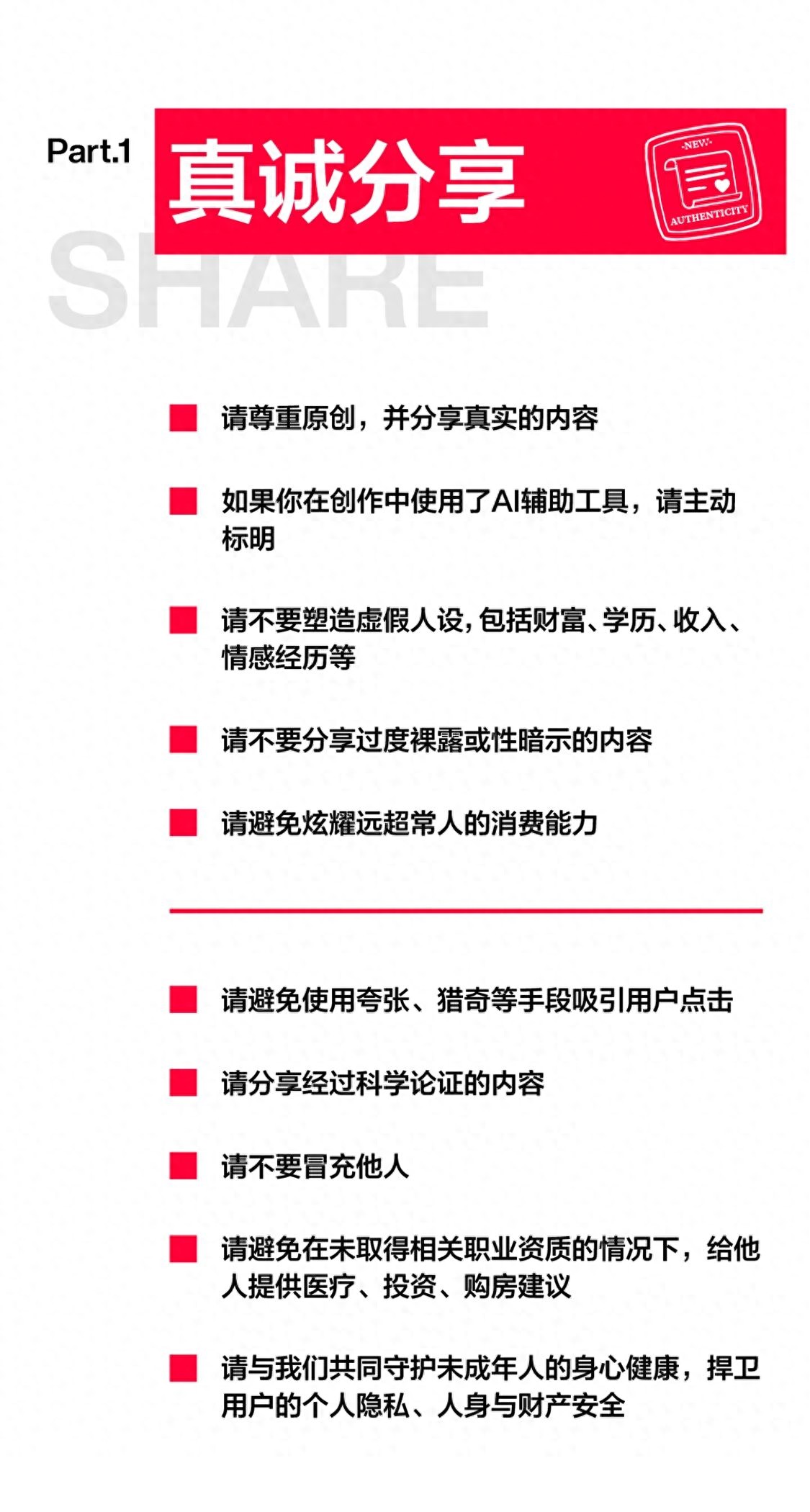 DoNews1月19日消息,今天,小红书「社区公约2.0」——正式上线:真诚分享,友好互动。这次,小红书明确呼吁:一起“反对制造对立”:尊重不同,理性对话,不煽动不对立;坚决“抵制虚假内容”:不虚构身份,不刻意夸张,守护真实底色;共同“践行有序经营”:亮明身份,诚信经营,拒绝恶意竞争。