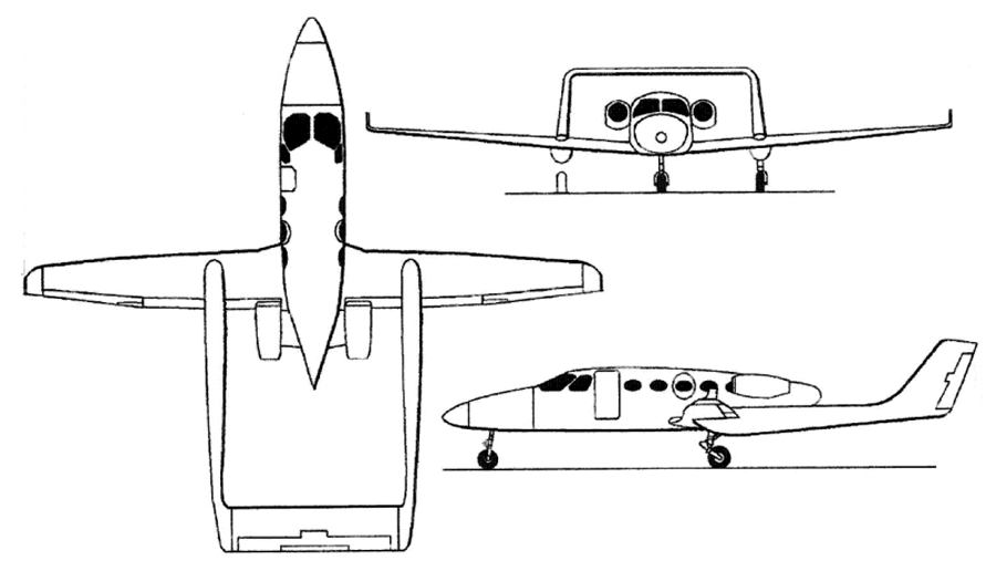 鲁坦完成了Model 309概念验证机,在2000年推出,主要由碳纤维环氧复合材料制成,核心为 Nomex 蜂窝结构。舒适的加压客舱设计为可容纳一名飞行员和五名乘客,,机头设有非加压行李空间,其余行李则存放在后排座椅后方的客舱内。它由两台康蒂尼特尔 TSIO-550-G 发动机驱动,这些发动机在高空表现良好,并提供加压。