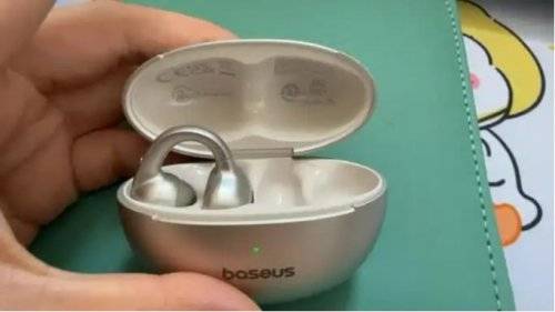 倍思M C1 P ro主打开放式佩戴。磨砂外壳手感很赞,机身小巧便携,揣兜里完全不占地方。它采用呼吸泄压设计,再加上钛合金丝的加持,单只有5g,戴在耳朵上轻盈又舒服,日常通勤能稳稳贴合耳廓,不会轻易掉下来。