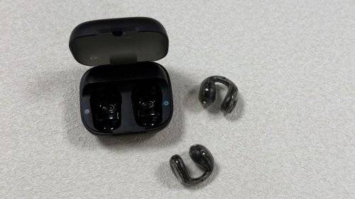 参考价格:369元声阔C30i开放式耳机的透明外壳设计颇具特色,能直接看见内部元器件,不过透明磨砂塑料材质容易沾指纹、刮花。单耳5.7g的重量中规中矩,但机身材质偏硬缺乏柔韧性,长时间佩戴容易产生硌耳感,舒适度欠佳。