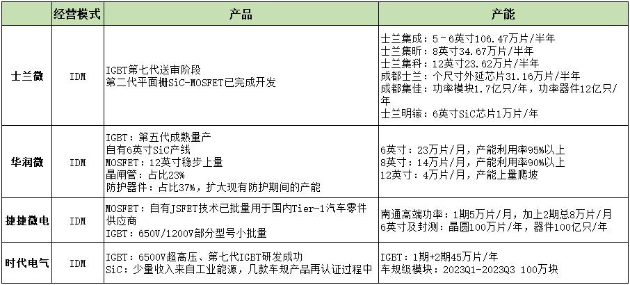 在这一进程中,华润微、士兰微和扬杰科技等力量都功不可没,这几家企业都已经在中低压MOSFET、IGBT等领域实现规模化量产,逐步斩下国产替代的份额。